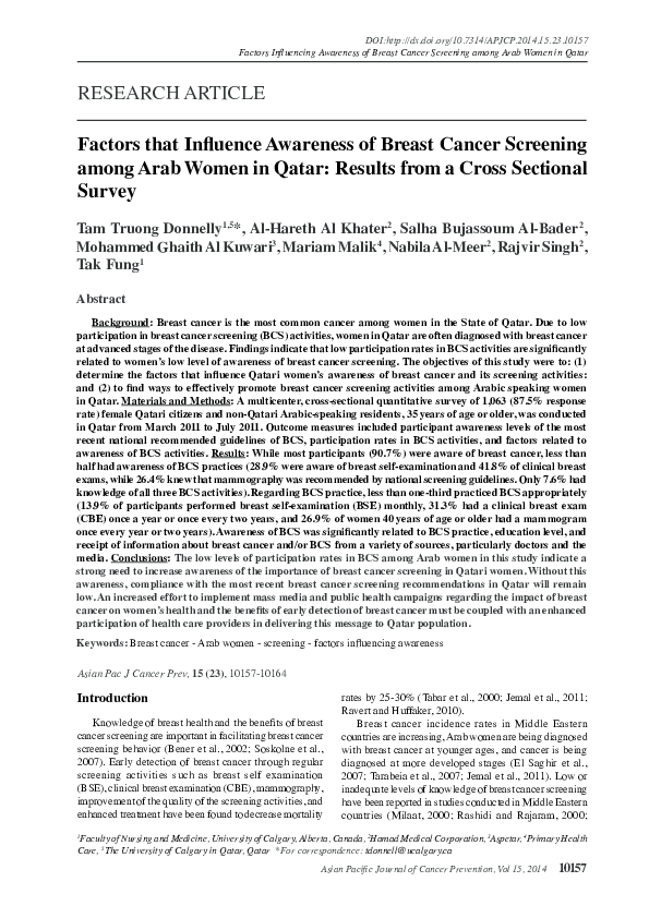 PDF) Breast Cancer Screening Amongst Arabic Women Living in the